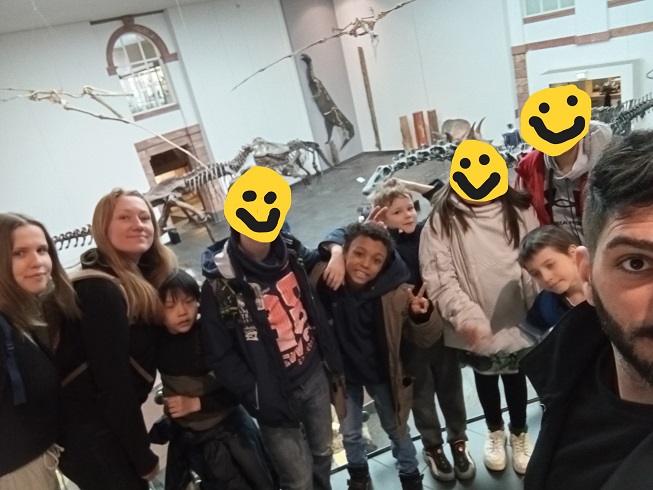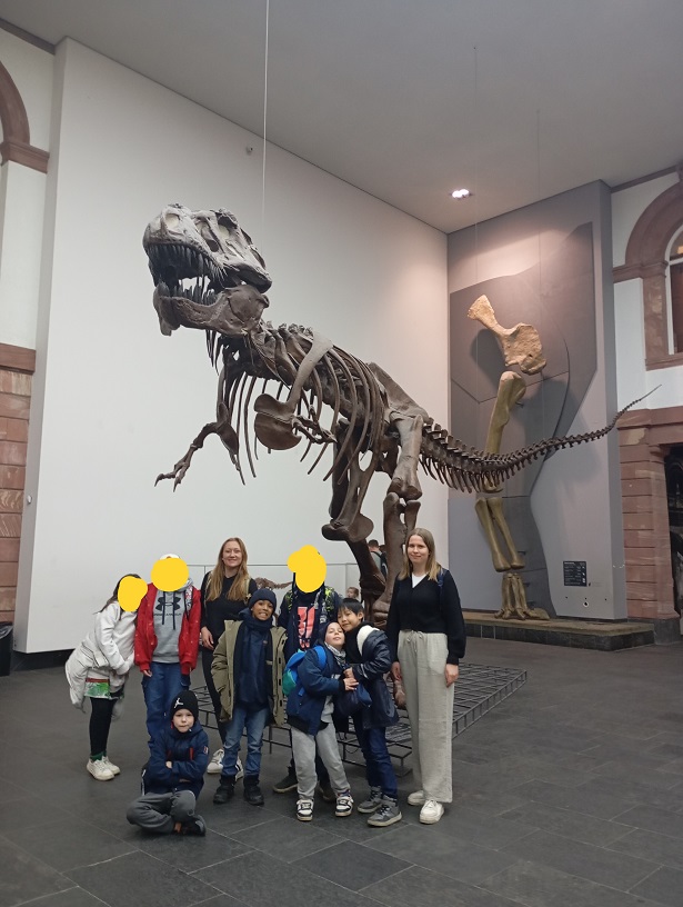 Ein kreatives Projekt, welches durch unseren Fachdienst geleitet wurde, stand ebenfalls auf dem Programm: Das Backen von bunten Amerikanern. Die Kinder waren mit viel Eifer dabei, die leckeren Kekse zu gestalten und anschließend zu genießen. Die bunten Leckereien waren ein echter Hit und sorgten für strahlende Gesichter. Ein weiteres spannendes Highlight war der Ausflug ins Senckenberg Museum in Frankfurt. Auf dem Weg dorthin bestaunten die Kinder die landenden Flugzeuge, welche an der Autobahn über unseren Köpfen flogen. Wir hatten die Möglichkeit, die faszinierende Welt der Dinosaurier und viele andere interessante Ausstellungen zu erkunden. Ständig entdecken wir etwas Neues und Aufregendes. Es war eine lehrreiche Erfahrung, die das Interesse an Naturwissenschaften und Geschichte weckte. Hier hatten die Kinder auch selbst die Möglichkeit zu experimentieren und sich mit der Naturwissenschaft auseinanderzusetzen. Es war ein sehr schöner Tagesausflug, der die Gruppe noch enger zusammenschweißte.